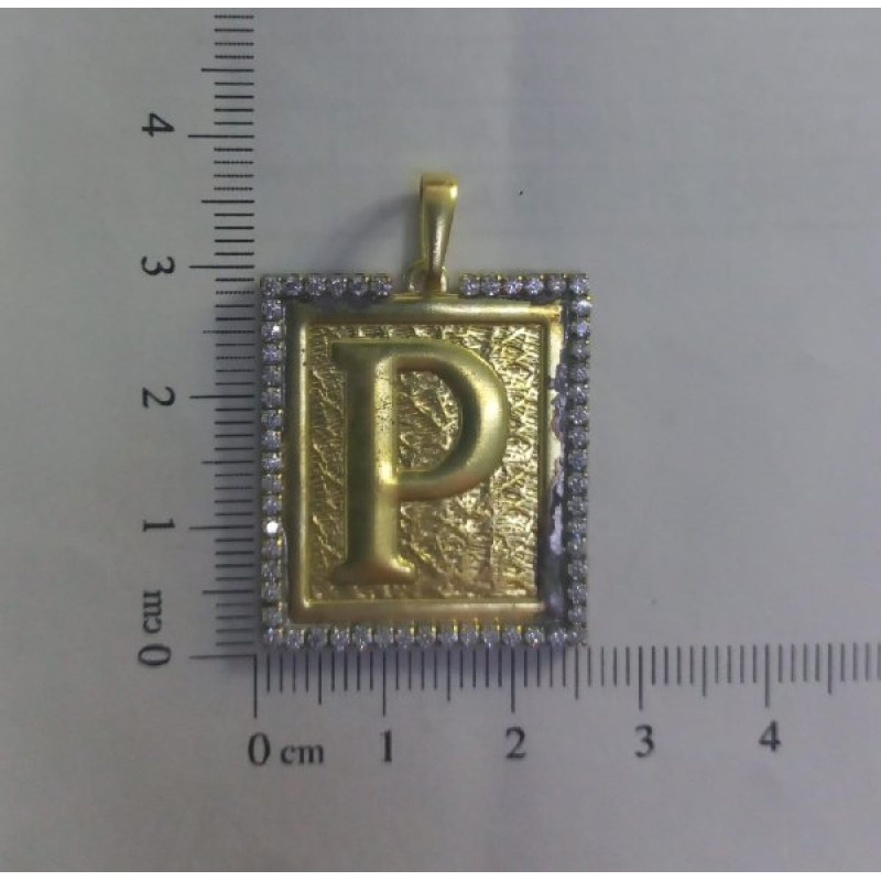 PIN LETRA P QUADRADA C/ ZIRCONIA VOLTA | MÍNIMO 5PÇ POR MODELO => Peso:3,83g
