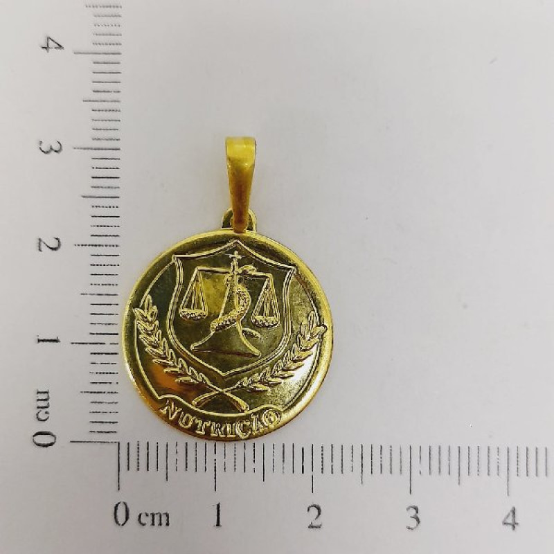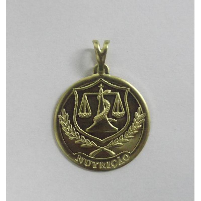 Pingente de latão redondo médio com símbolo de nutrição e escrito em baixo com contra argola | Venda mínima de 5 peças por modelo | Peça no bruto para banho => Peso:1,43g